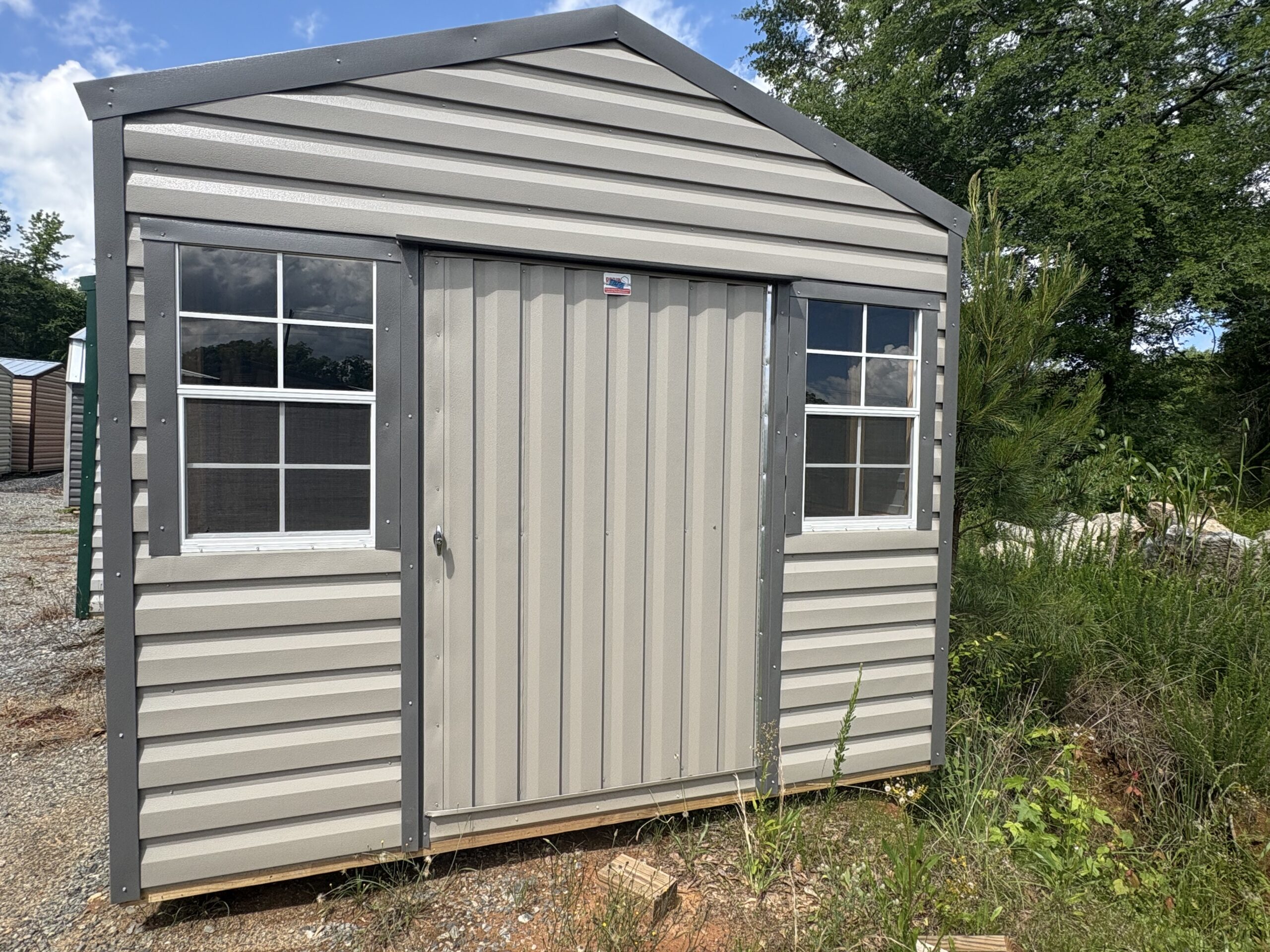 A classic 8×12 wooden structure with Americana charm—perfect for a garden shed, workshop, or extra storage space. Crafted with durable wood siding and traditional styling to blend with any property.