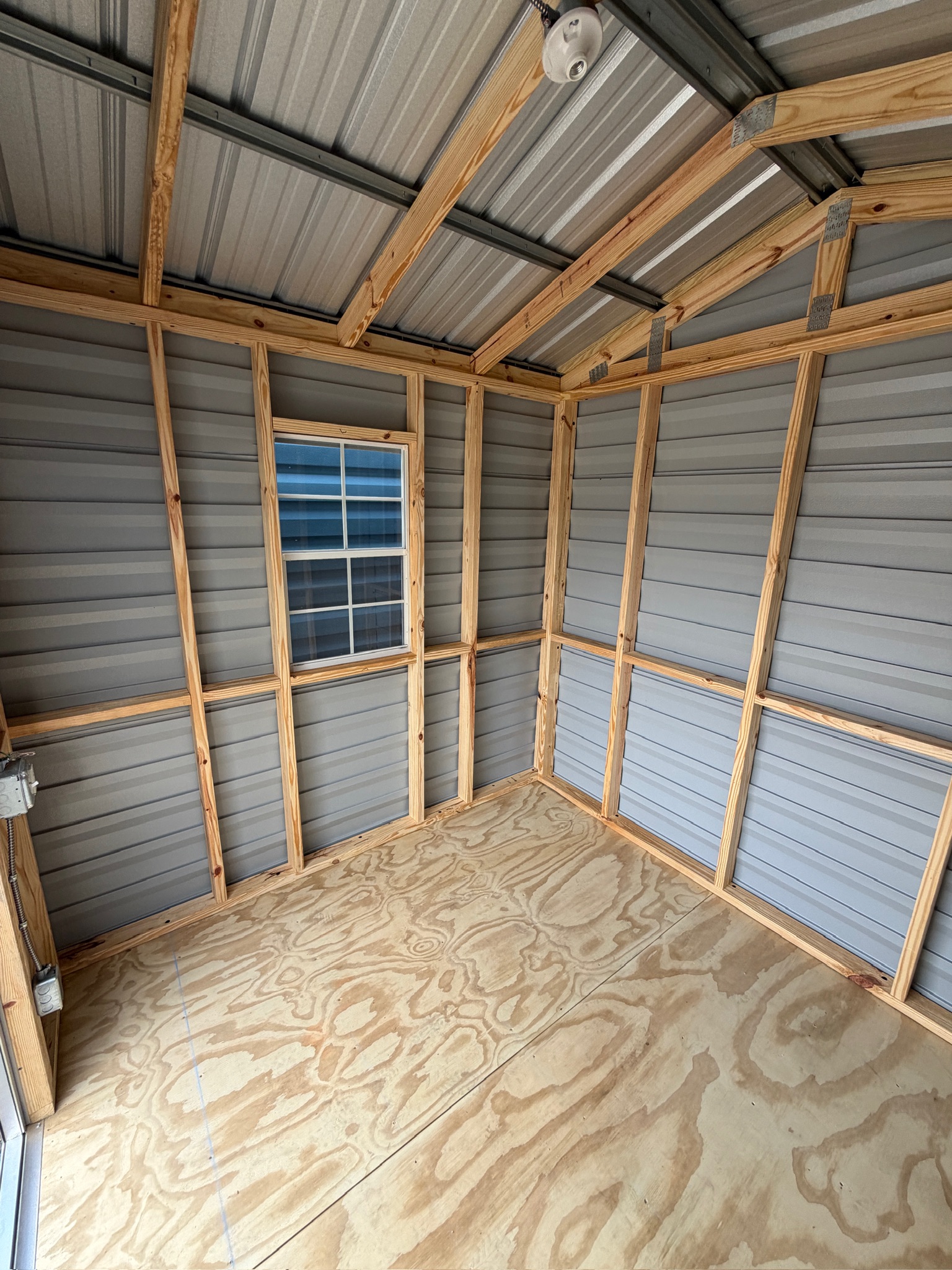 Featuring a spacious 8×8 layout, it’s perfect for storing tools, lawn equipment, bikes, or seasonal items—and with built-in electrical access, it can also serve as a light workspace or hobby area. Constructed with strong, weather-resistant materials, the Americana Shed is built to protect your belongings while offering long-term performance.