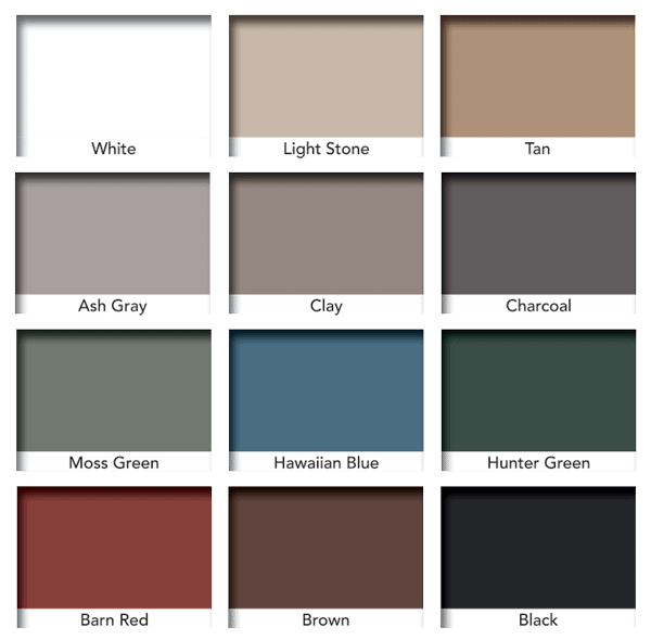 Siding: Standard in White, Light Stone, Tan, Ash Gray, Clay and Charcoal; or, upgrade to any color shown.